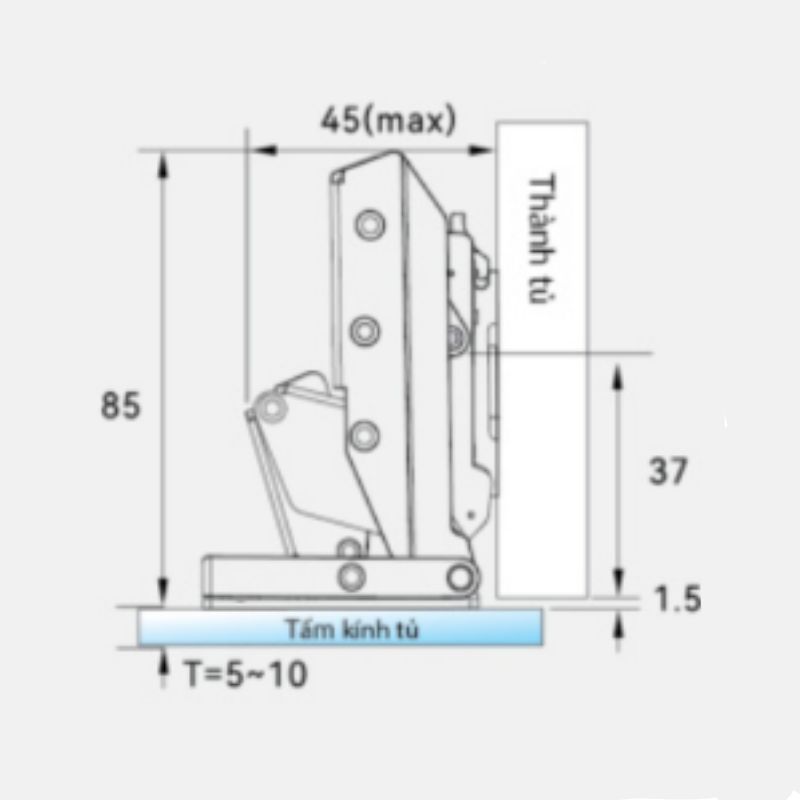 - Độ dày cánh cửa kính phù hợp: 5-10mm