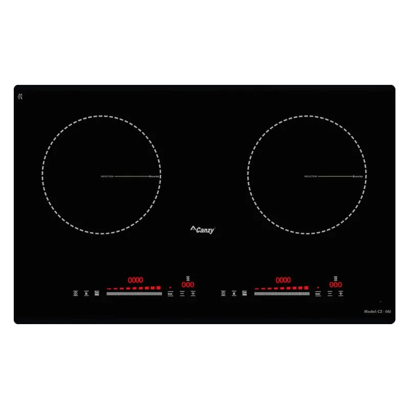 Bếp từ đôi Canzy CZ-06I nhập khẩu nguyên chiếc với thiết kế sang trọng. Bảng điều khiển cảm ứng hiện đại cùng nhiều tính năng nấu thông minh. Công nghệ biến tần Inverter bền bỉ, an toàn, tiết kiệm điện năng