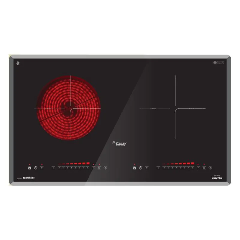 Bếp Điện Từ Canzy CZ-MIX82H là dòng bếp hỗn hợp từ và hồng ngoại được nhập khẩu nguyên chiếc từ Malaysia, sản xuất theo dây chuyền công nghệ của Ý. Sản phẩm có thể tận dụng được nhiều chiếc nồi cũ (nấu trên mâm hồng ngoại) giúp tiết kiệm chi phí mua sắm, lượng tiêu thụ điện của bếp cũng ít hơn so với nhiên liệu dùng bếp gas thông thường. Hiệu suất đun nấu của bếp hỗn hợp này cao hơn giúp nấu chín thức ăn nhanh chóng. Mâm từ của bếp thích hợp cho các món ninh, hầm,… mâm hồng ngoại của bếp cho phép bạn có thể nướng các loại thực phẩm tươi sống và thực phẩm khô mà không phải mất thời gian như cách nướng thông thường.
