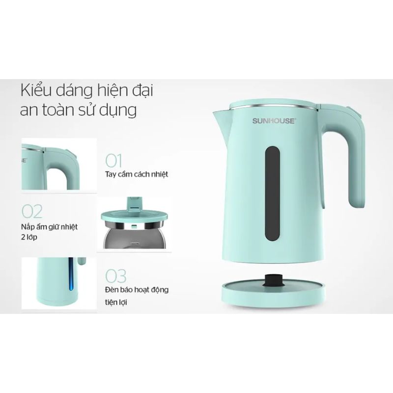 - Tự động tắt khi nước sôi, cạn nước hoặc quá nhiệt