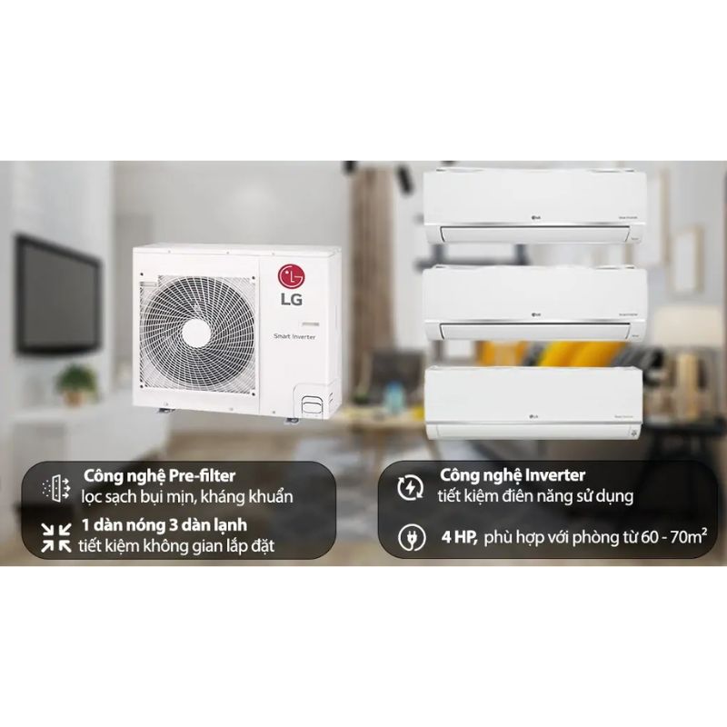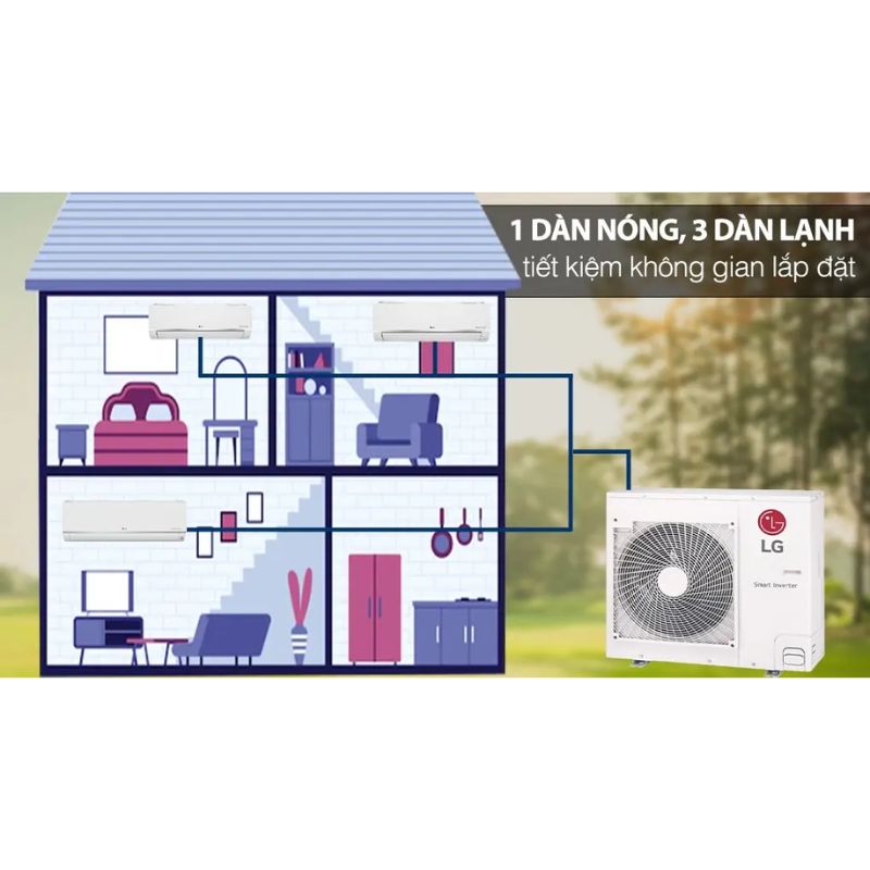 Bộ máy lạnh Multi LG Inverter 3 dàn lạnh 4 HP Z4UQ36GFA0 là sự lựa chọn tuyệt vời dành cho người dùng có nhu cầu lắp nhiều dàn lạnh cho các phòng trong nhà. Người dùng chỉ cần một dàn nóng bên ngoài đã có thể cung cấp đủ hơi lạnh cho 3 dàn lạnh bên trong nhà. Chính vì thế cả không gian nhà và chi phí đều được tối ưu. Hơn nữa với trang bị công nghệ Inverter hiện đại người dùng cũng không phải lo lắng quá nhiều về chi phí điện hằng tháng. Bộ máy lạnh Multi LG Inverter 3 dàn lạnh 4 HP Z4UQ36GFA0 – Làm mát hiệu quả, tiết kiệm tối đa.