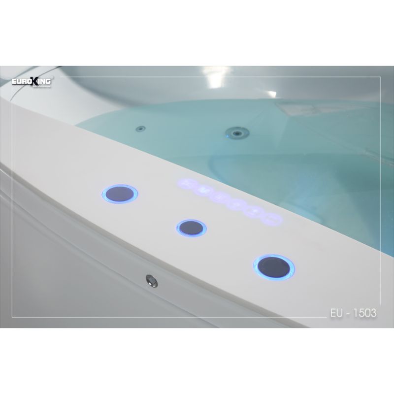 - Bồn tắm EU-1503 còn tích hợp một bảng điều khiển cảm ứng. Nếu chúng ta không sử dụng, vị trí của bảng điều khiển gần như là một màu trắng đồng dạng với bề mặt bồn tắm. Khi khởi động, các điểm chạm cho mỗi chức năng tự động phát ra ánh sáng xanh. Chúng ta chỉ cần chạm nhẹ là có thể tận hưởng mọi sự thư giãn tuyệt đỉnh nhất.