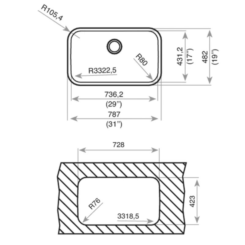 - Kích thước rộng rãi: Với kích thước tổng quát 787x482x200mm và hộc rửa 736x431x200mm, chậu cung cấp không gian thoải mái cho việc rửa chén bát và nấu nướng.