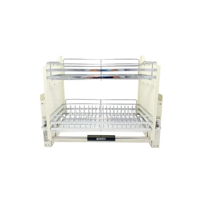 Giá bát nâng hạ BossEU BS304.160DS sử dụng chất liệu Inox 304 cao cấp, tạo thành những thanh nan tròn được đan xen với nhau một cách khoa học.