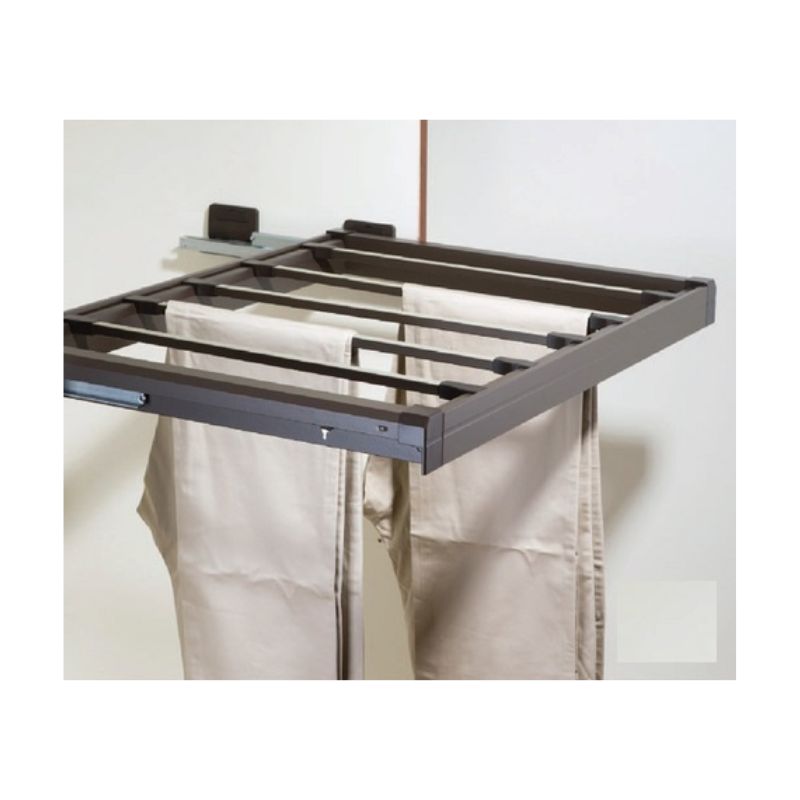 Hệ thống ray trượt giảm chấn chuyển động nhẹ nhàng, tránh va chạm mạnh. Thiết kế nhiều thanh dọc bên trong giá nên để được số lượng quần áo khá lớn.