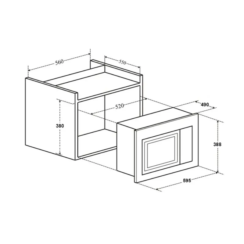 - Kích thước âm tủ: 560x380x550mm (NgangxCaoxSâu)