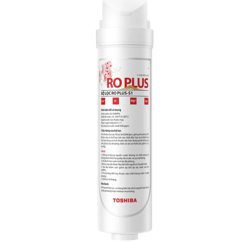 - Không những thế, lõi lọc RO Toshiba Số 2 F-2399-RO PLUS là một sự cải tiến mới với kích thước lọc nhỏ nhất là 0.0001 micron. Thiết kế này có khả năng loại bỏ hiệu quả nhiều loại vi khuẩn, tạp chất có hại nhưng cũng đồng thời vẫn giữ lại được nhiều khoáng chất thiết yếu, tốt cho cơ thể người dùng.