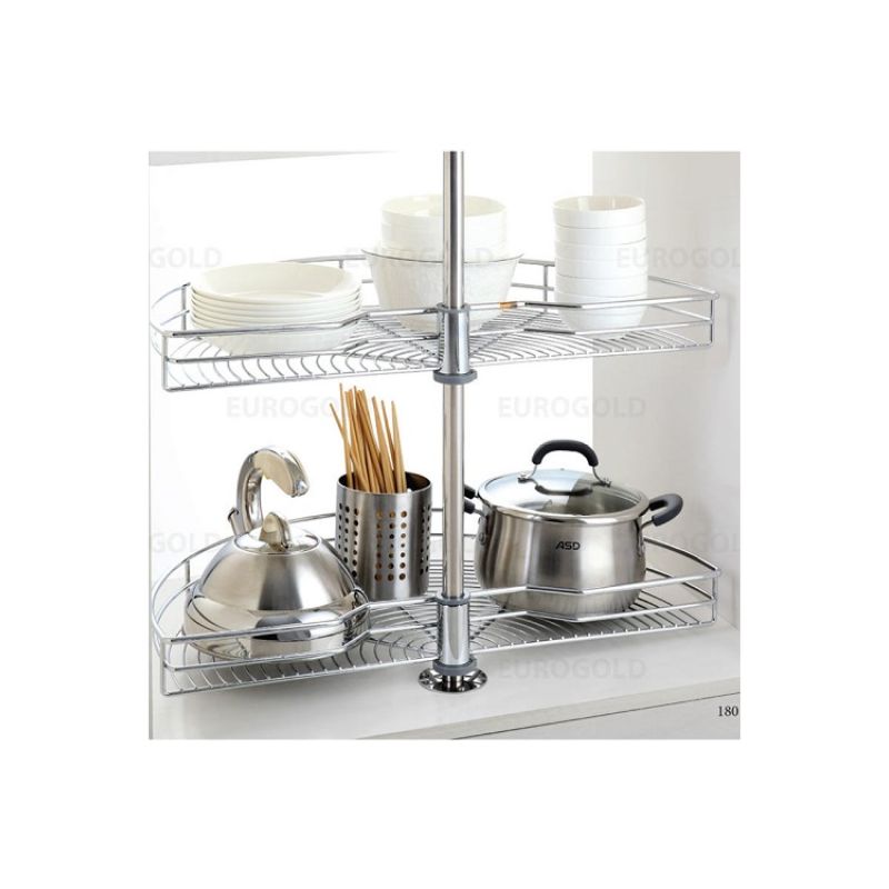 - Với thiết kế một trục cố định ở giữa và 2 mâm inox nan dẹt xoay 180 độ giúp việc cất giữ đồ như cốc chén, bát đĩa, chai lọ… trở nên đơn giản hơn. Vừa gọn gàng và ngăn nắp lại vừa tiết kiệm tối đa được không gian bếp.