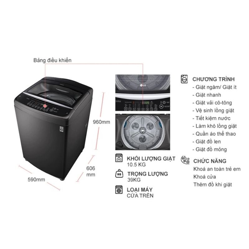 Máy Giặt LG Inverter 10.5 Kg T2350VSAB cửa trên