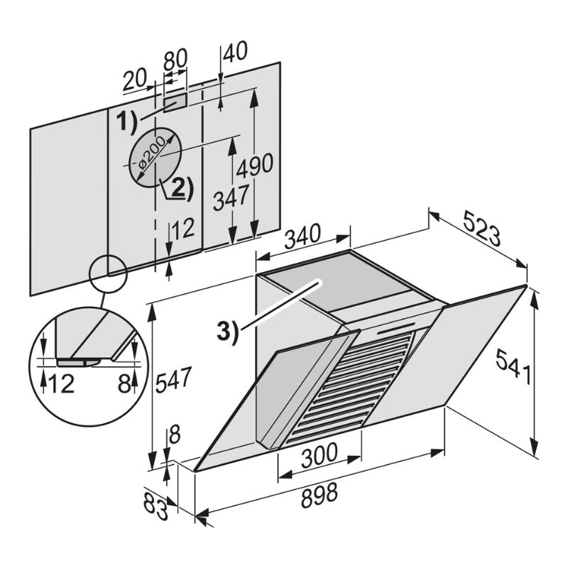 - Khoảng cách tối thiểu phía trên bếp gas (tổng công suất tối đa 12,6 kW, đầu đốt ≤ 4,5 kW): 650 mm