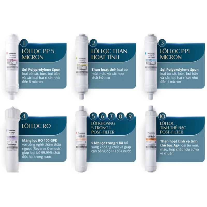Hệ thống 6 lõi lọc 10 lớp lọc loại bỏ 99.9% vi-rút và vi khuẩn
