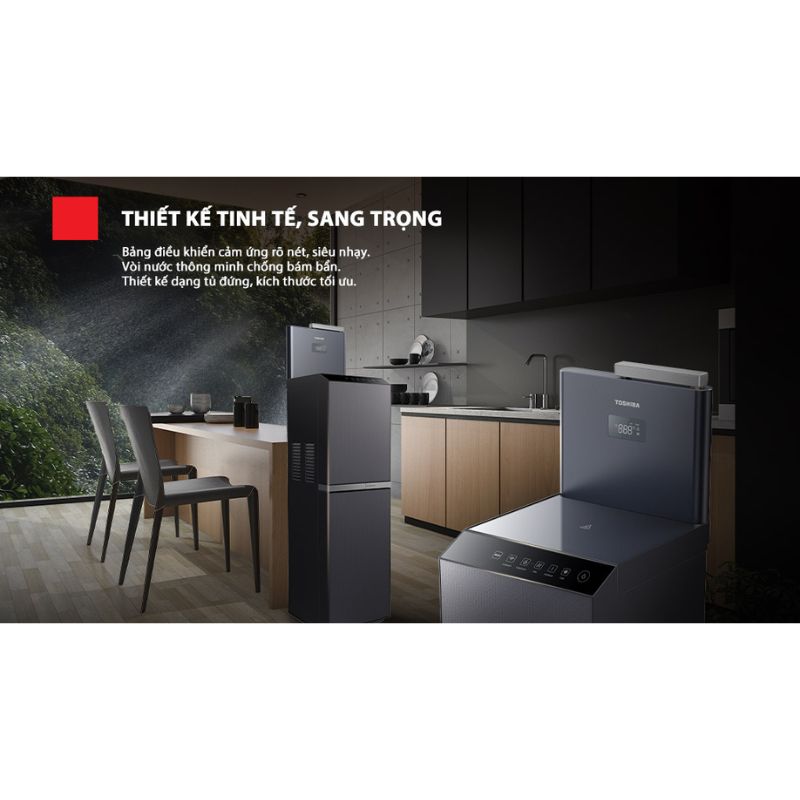 - Máy lọc nước RO nóng nguội lạnh Toshiba TWP-W2399SVN(M) sở hữu thiết kế dạng tủ đứng, kích thước tối ưu dễ dàng lắp đặt ở nhiều vị trí khác nhau, giúp tiết kiệm diện tích tối đa.
