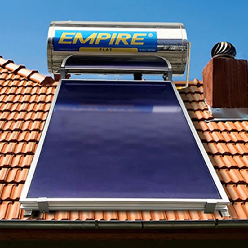 - Máy nước nóng năng lượng mặt trời tấm phẳng Empire E-PLAT 200 200 Lít được trang bị một tấm thu nhiệt phẳng có kích thước 2000 x 1000 x 80mm. Tấm kính cường lực dày 3.2mm cho khả năng hấp thụ nhiệt lên đến 95%, đảm bảo nước nóng luôn sẵn sàng phục vụ các thành viên trong gia đình.