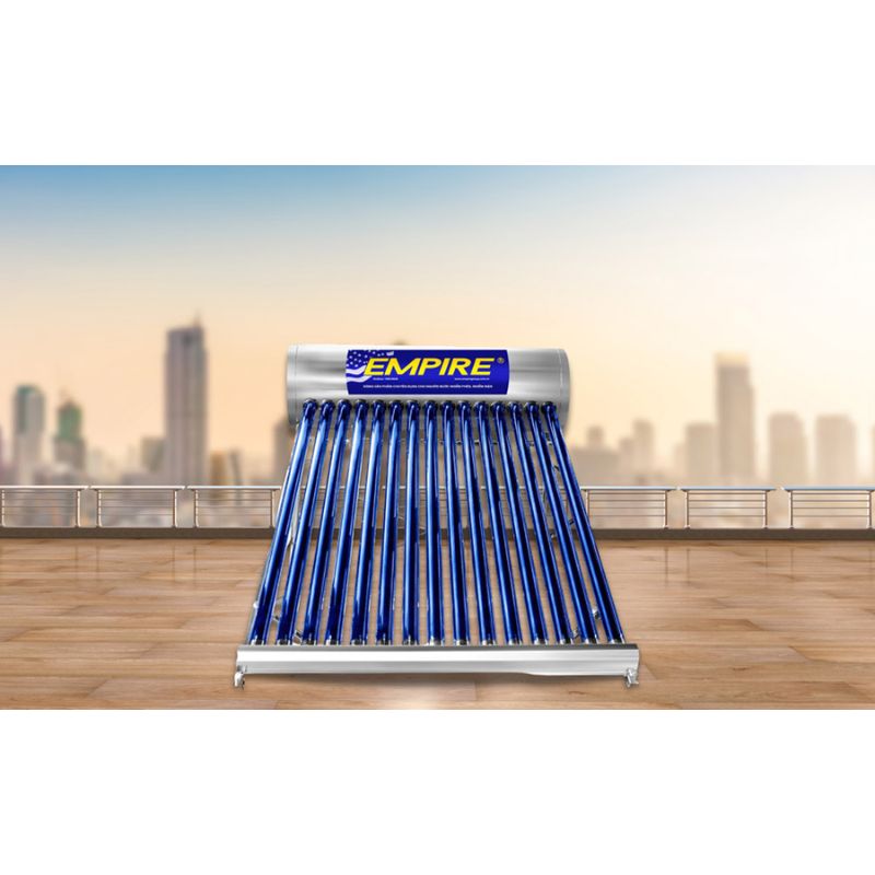 - Trang bị 15 ống thủy tinh dài 1.8m: Máy nước nóng năng lượng mặt trời Empire được trang bị 15 ống thủy tinh dài 1.8m, được phân bổ đều nhằm tối ưu hiệu suất hoạt động. Khi lắp đặt, phần ống thủy tinh nên quay về hướng Tây Nam để đảm bảo tối đa hóa thời gian tiếp xúc với ánh nắng mặt trời. Nhờ vậy, máy có khả năng hấp thu nhiệt một cách hiệu quả, đảm bảo cung cấp nước nóng ổn định cho gia đình bạn.