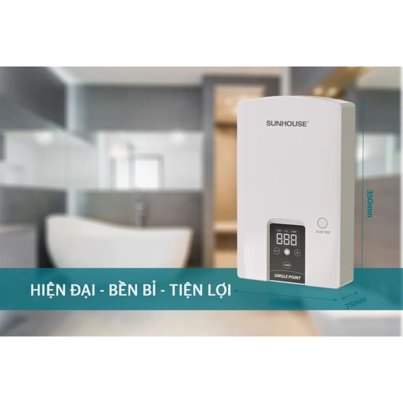 - Hệ thống an toàn đồng bộ tích hợp ELCB: An toàn luôn là yếu tố quan trọng nhất khi sử dụng các thiết bị điện nước. Máy nước nóng trực tiếp Sunhouse SHA-9453EP được trang bị hệ thống an toàn đồng bộ tích hợp ELCB, giúp chống giật và chống bỏng hiệu quả. Bên cạnh đó, máy còn có chức năng tự ngắt khi quá nhiệt, đảm bảo an toàn tuyệt đối cho người dùng trong suốt quá trình sử dụng.