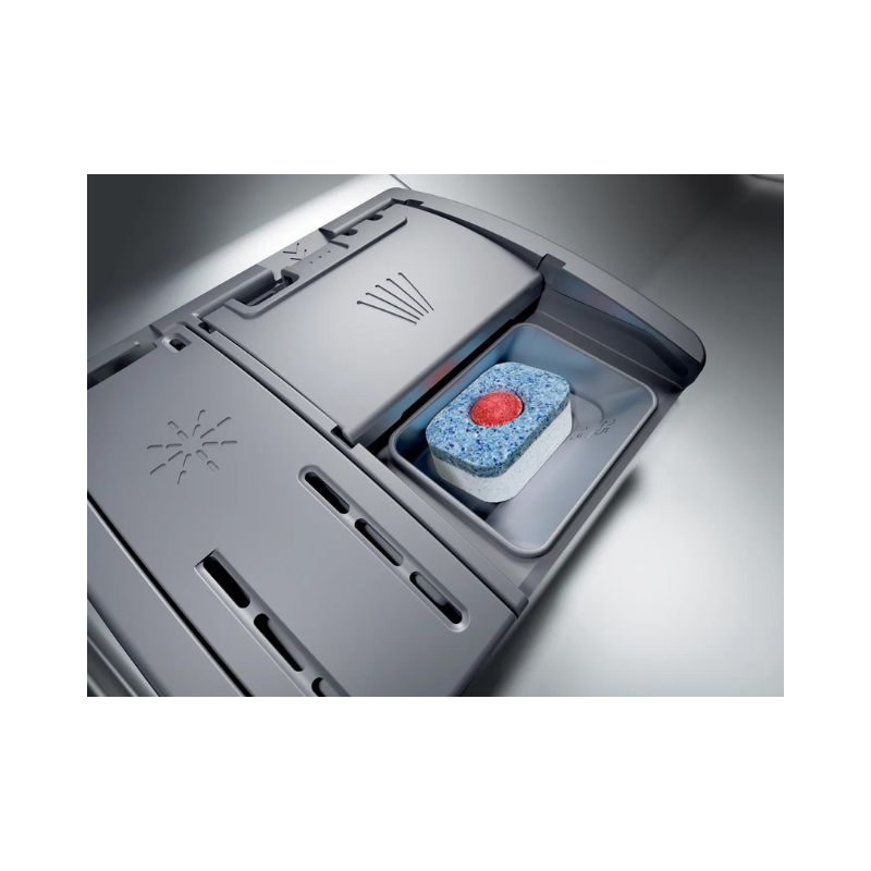 - Hỗ trợ định lượng được sử dụng để tối ưu hóa hoạt động của viên rửa. Viên rửa được thả thẳng vào một ngăn đựng đặc biệt ở giàn phía trên, nơi nó sẽ tan dần và có kiểm soát. Khi được trộn với nước đúng cách, chất tẩy rửa sẽ tác động lên bát đĩa với lực lớn hơn, đảm bảo kết quả rửa hoàn hảo cho mỗi lần rửa.