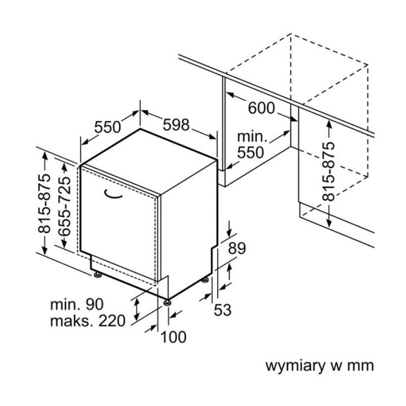 Hình ảnh kích thước của máy rửa bát âm tủ Bosch SMV6ZCX16E Serie 6
