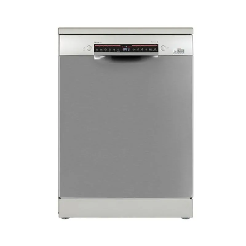 - Thiết kế sản phẩm: Với thiết kế máy rửa bát độc lập kiểu dáng sang trọng, gam màu bạc nhã nhặn, thời thượng phối hợp hài hòa với các món đồ nội thất khác trong gian bếp gia đình bạn. Vỏ máy và cánh cửa được làm bằng thép sơn tĩnh điện hạn chế rỉ sét, dễ dàng lau chùi khi có thức ăn, bụi bẩn bám trên bề mặt thiết bị. Sử dụng bảng điều khiển nút nhấn thiết kế thân thiện với mọi người dùng, đi kèm chú thích tiếng Anh đơn giản, màn hình hiển thị rõ nét để bạn theo dõi và tùy chỉnh tính năng tiện lợi.