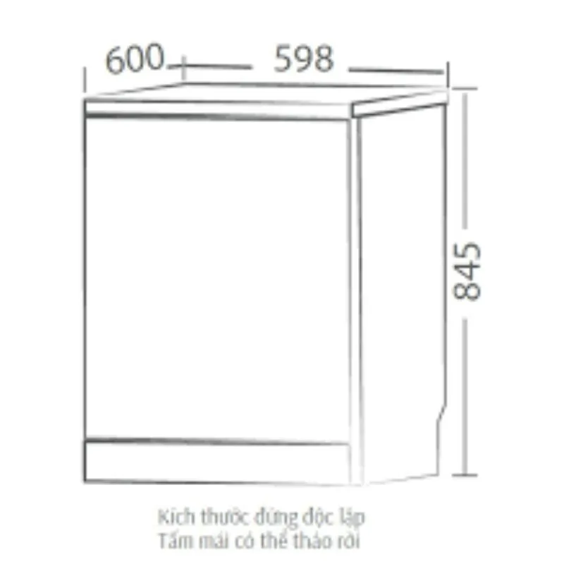 • Kích thước sản phẩm đứng độc lập ( CaoxSâuxRộng): 845x600x598mm