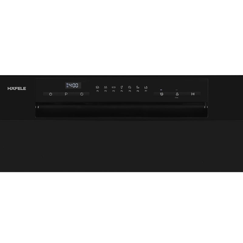 - Máy rửa chén mini Hafele HDW-T5531B (538.21.350) được thiết kế với các nút nhấn kết hợp với màn hình hiển thị, giúp bạn có thể thao tác và quan sát thời gian rửa cùng những chỉ báo khác.