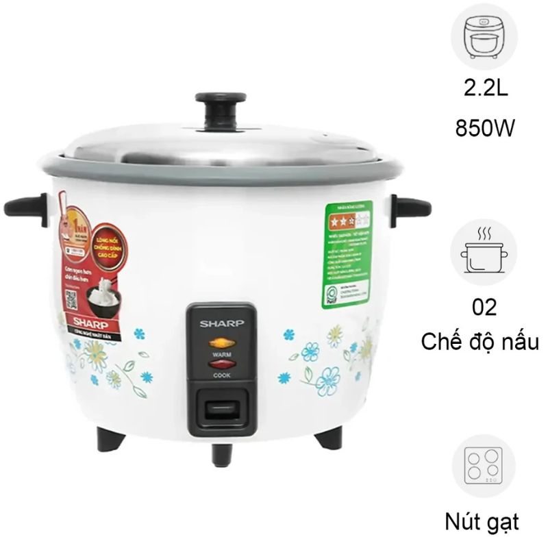 Nồi cơm điện Sharp KSH-228SNV-SF 2.2 lít với chất liệu bền bỉ, thiết kế nhỏ gọn và công suất mạnh mẽ, là sự lựa chọn lý tưởng cho gia đình 4 – 6 người. Sản phẩm giúp nấu cơm nhanh chín, giữ ấm tốt và dễ dàng vệ sinh.