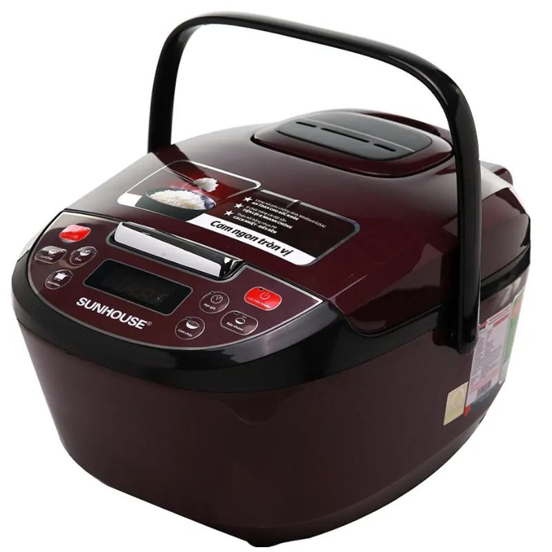 - Thiết kế hiện đại: Nồi cơm điện có màu đỏ rượu sang trọng, thiết kế nhỏ gọn và quai xách tiện lợi, phù hợp với nhiều không gian bếp khác nhau.