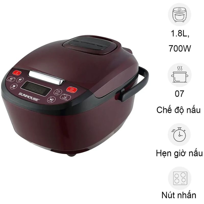 Nồi cơm điện Sunhouse SHD8909 1.8 Lít là sản phẩm lý tưởng cho gia đình từ 4 – 6 người, mang lại khả năng nấu cơm nhanh chóng, tiết kiệm thời gian với thiết kế hiện đại và tính năng thông minh.