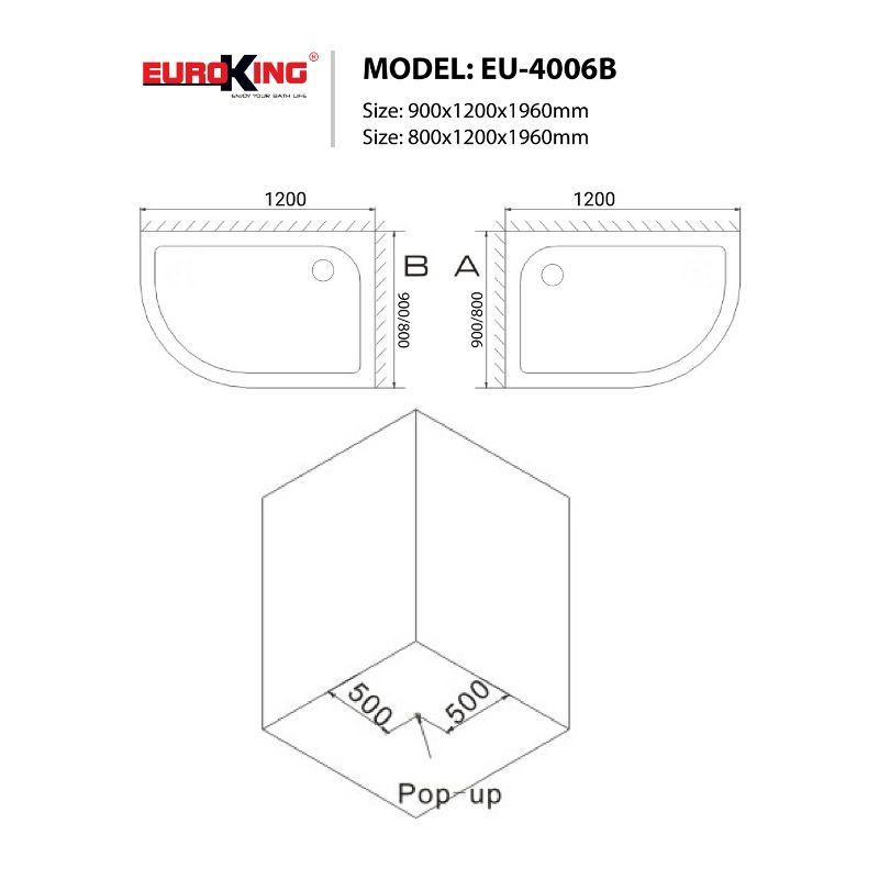 - Kiểu dáng góc hình cánh quạt của cabin tắm vách kính Euroking EU-4006 tạo phong cách độc đáo cho phòng tắm gia đình bạn. Với 2 kích thước: 800x1200x1960mm 900x1200x1960 mm, đây là sản phẩm vách tắm kính kích thước lớn phù hợp lắp đặt với mọi không gian phòng tắm to nhỏ khác nhau.