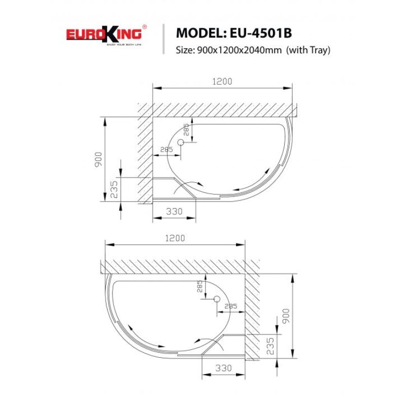 - Kích thước: vách kính phòng tắm với kích thước 900 x 1200 x 2040 mm