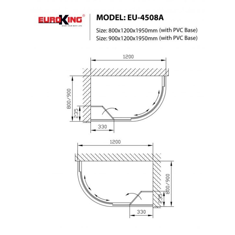 - Kích cỡ: có 2 sự lựa chọn cho người dùng với kích cỡ 800x1200x1950mm, và 900x1200x1950mm. Dạng khối bo quanh góc tường với diện tích bên trong được tối đa cho người sử dụng.