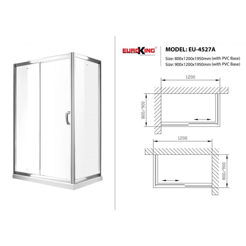 Phòng tắm vách kính Euroking EU-4527A nổi bật với thiết kế hình chữ nhật, bao quanh là lớp kính cường lực trong suốt.