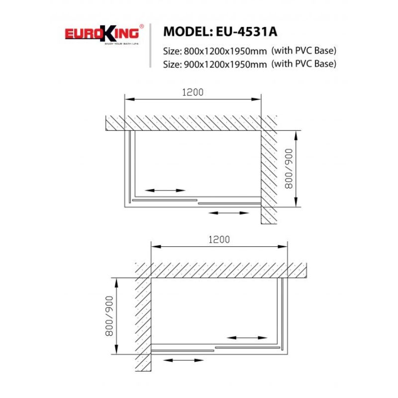- Cửa mở: dạng trượt (gạt) bằng kính với tay cầm bằng inox tiện lợi cho người dùng mà không làm gia tăng thêm diện tích phòng.
