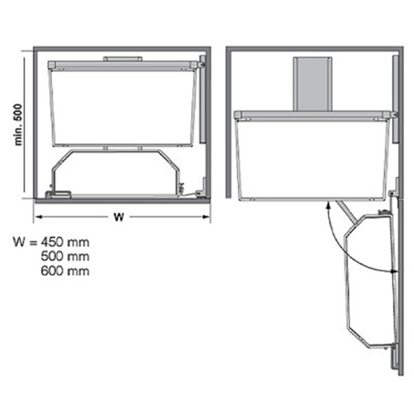 Thông số kỹ thuật của phụ kiện tủ bếp Hafele 545.93.436 bộ 3 tầng TANDEM COFF 600mm
