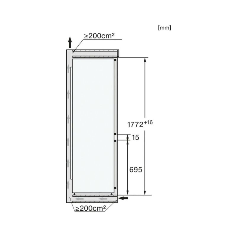 - COMFORTSIZE – Bảo quản thực phẩm theo cách thoải mái: Thể tích lớn hơn: Các thiết bị làm lạnh Miele với ComfortSize cung cấp đủ không gian để bảo quản thực phẩm một cách thoải mái. Nhờ độ sâu lớn hơn, có thể đặt khay nướng vào thiết bị phía trên ngăn PerfectFresh Pro hoặc PerfectFresh Active. Do đó, ngay cả những vật cồng kềnh cũng có thể dễ dàng đưa vào.