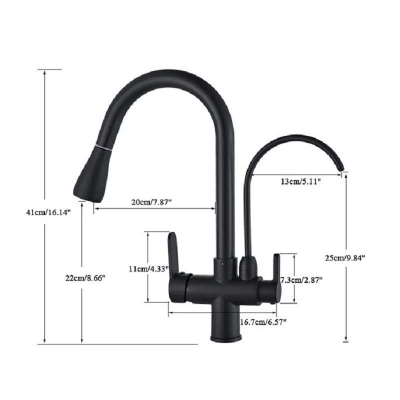 - Chức năng: Nóng-lạnh-nước lọc + Rút dây + Đầu vòi khớp xoay + 2 chức năng Sprayer (Phun hoa sen, tạo bọt khí)